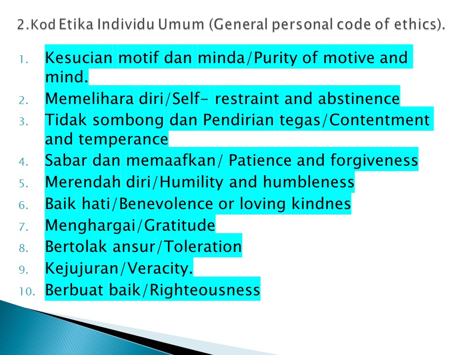 - Penghayatan etika dan peradaban mengikut konteks masyarakat, negara dan pasaran.