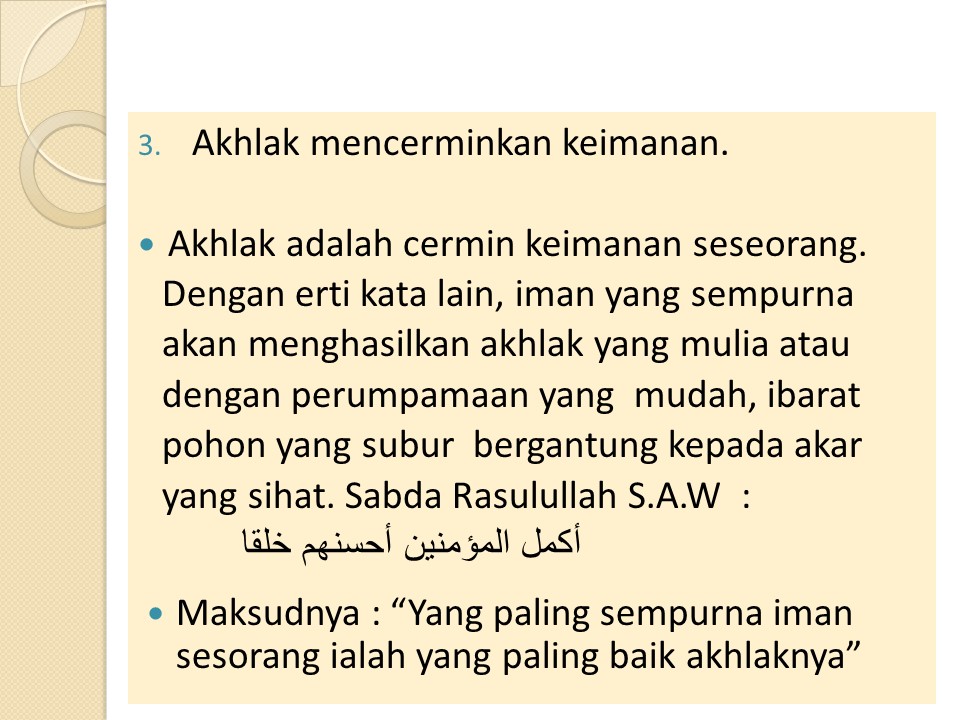 Sumber etika dalam Islam adalah dari Al-Quran dan Hadis Nabi Muhammad SAW.