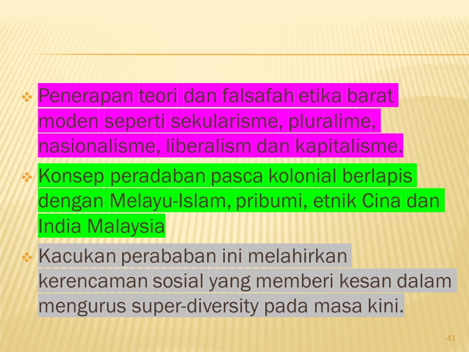 - Susur masa etika dan peradaban berdasarkan Prakolonial, Kolonial dan Pascakolonial.