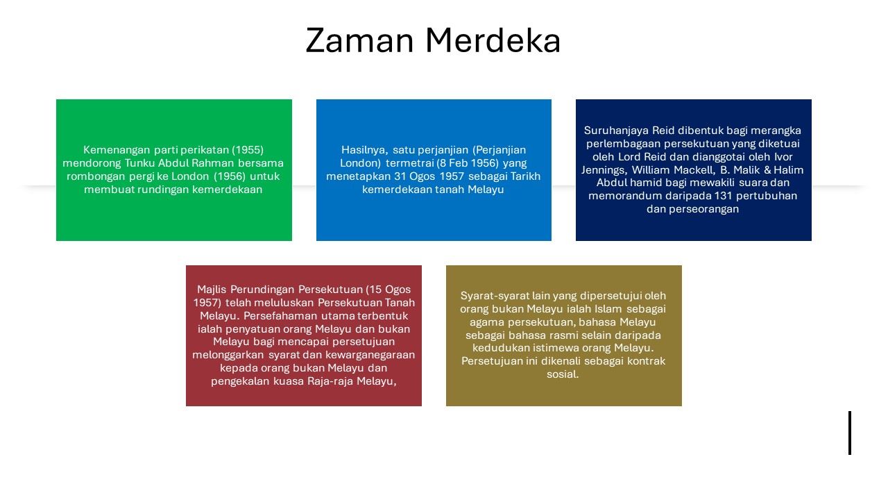 Pembentukan parti politik berteraskan kaum seperti UMNO, MCA, dan MIC.