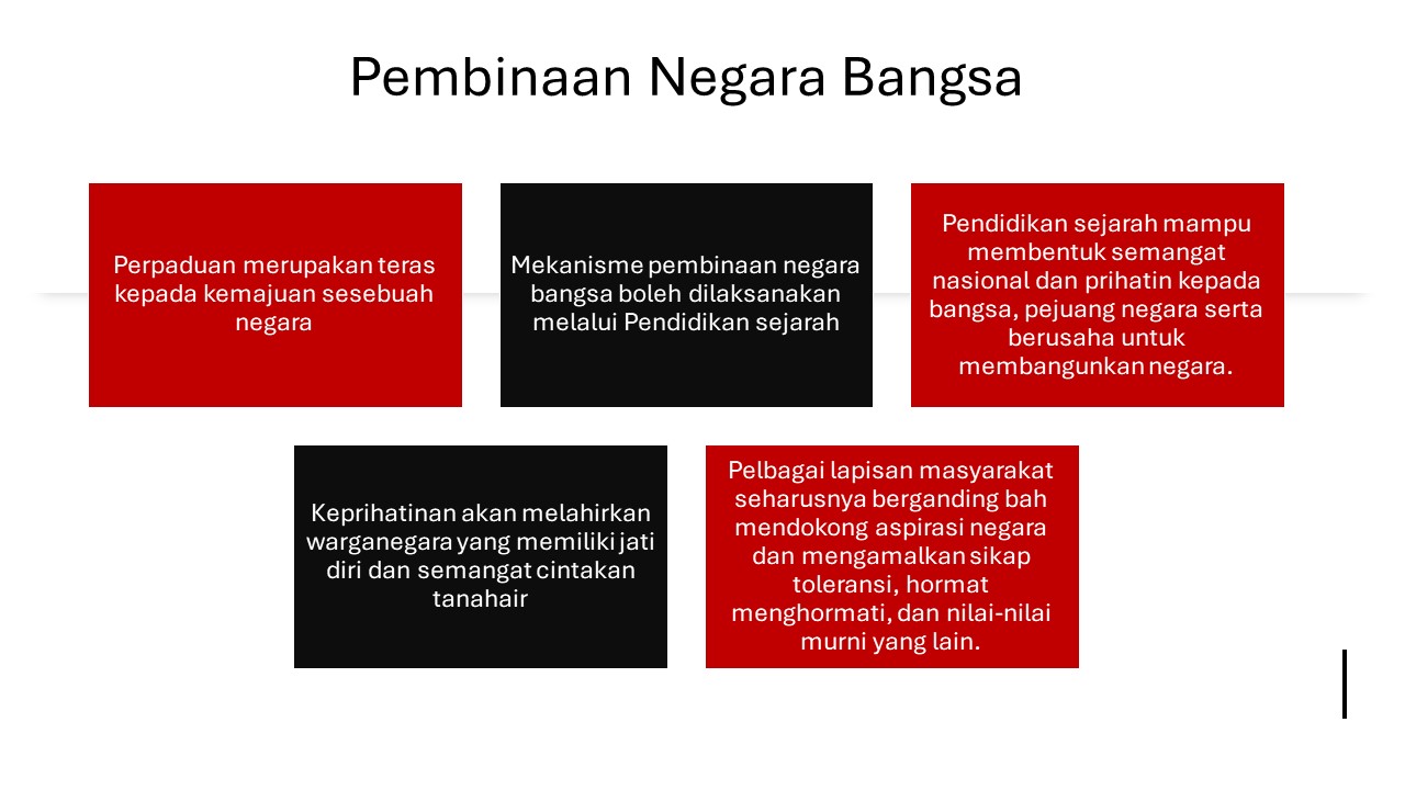 Konsep etika dan peradaban perlu dihayati melalui kerangka pemikiran acuan Malaysia agar kekuatan nilai keperibadian dalam norma masyarakat berdiri utuh sekaligus mampu mendepani cabaran kehidupan yang semakin kompleks. Matlamat ke arah pembinaan negara bangsa yang hebat dapat dibentuk dan dicapai dan akhirnya membawa kepada matlamat akhir yang diidamkan iaitu perpaduan dan kehidupan yang harmoni dengan persekitarannya.