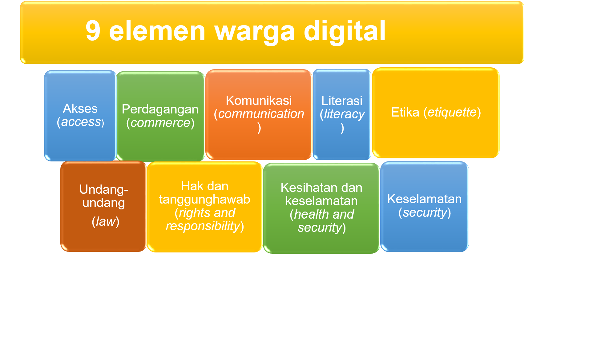 Terdapat sembilan elemen yang menjadikan warga dunia hari ini menjadi warga digital.